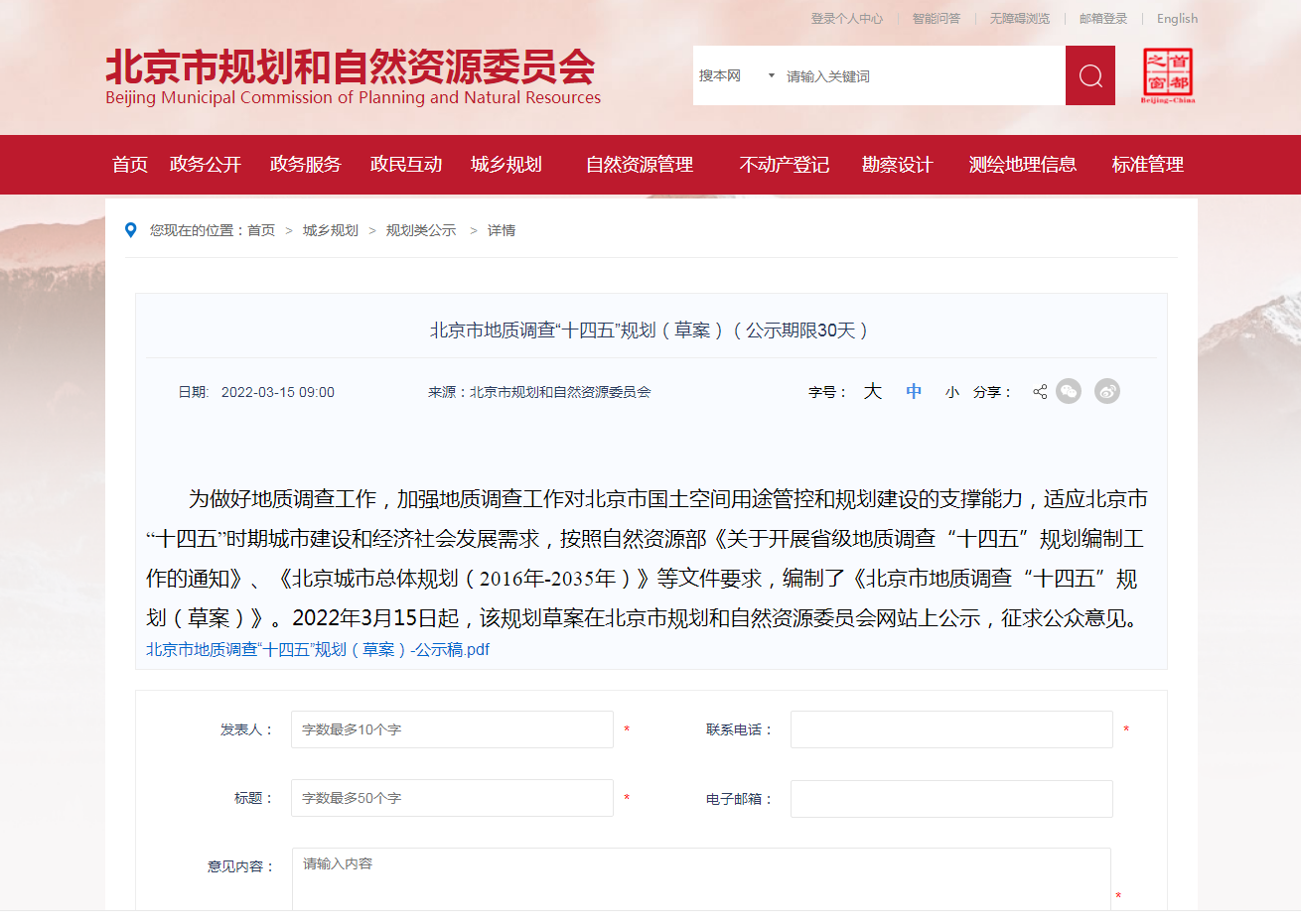 地大熱能地熱+多能互補網訊:《北京市地質調查“十四五”規(guī)劃(2021—2025年)(草案)》(以下簡稱《草案》)3月15日起在市規(guī)劃自然資源委網站公示,聽取公眾意見,公示期30天。《規(guī)劃》提出,北京市將率先對首都功能核心區(qū)地熱能等開展綜合地質調查評價,提供地質安全保障。社會公眾對該《規(guī)劃》如有意見建議,可在4月14日前登錄北京市規(guī)劃自然資源委網站留言。