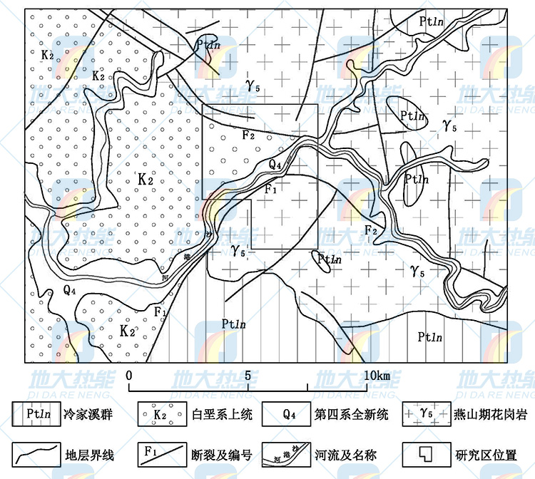 地下水在各類地層的徑流及排泄方式差異明顯[3],構(gòu)造裂隙水是研究區(qū)內(nèi)地下熱水的主要存在形式,其補徑排均受構(gòu)造控制,主要接受大氣降水補給,順構(gòu)造裂隙發(fā)育帶徑流運移,并在向深部運移過程中逐步進行熱力交換,富集形成熱田,在構(gòu)造發(fā)育部位上升排泄。