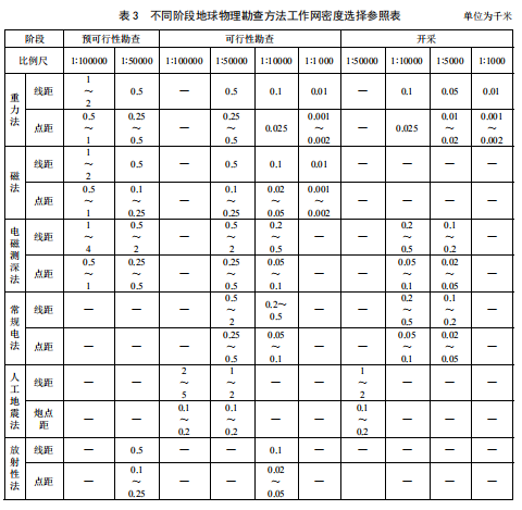 h) 地球物理方法實物工作量應滿足相應比例尺(參見表 3)及探測深度要求;后續(xù)涉及鉆探工作的應有異常驗證和再解釋的設計內(nèi)容。