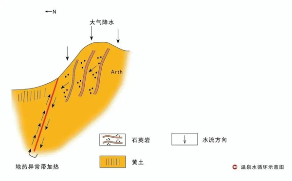 新生代以來,斷裂以正斷層活動為主,沿斷裂出露有臨潼驪山溫泉、藍田東湯峪溫泉、眉縣西湯峪溫泉、寶雞溫水溝溫泉等,溫度在30℃-60℃,流量大小不等,大的可達100m^3/h以上,小的小于10m^3/h。