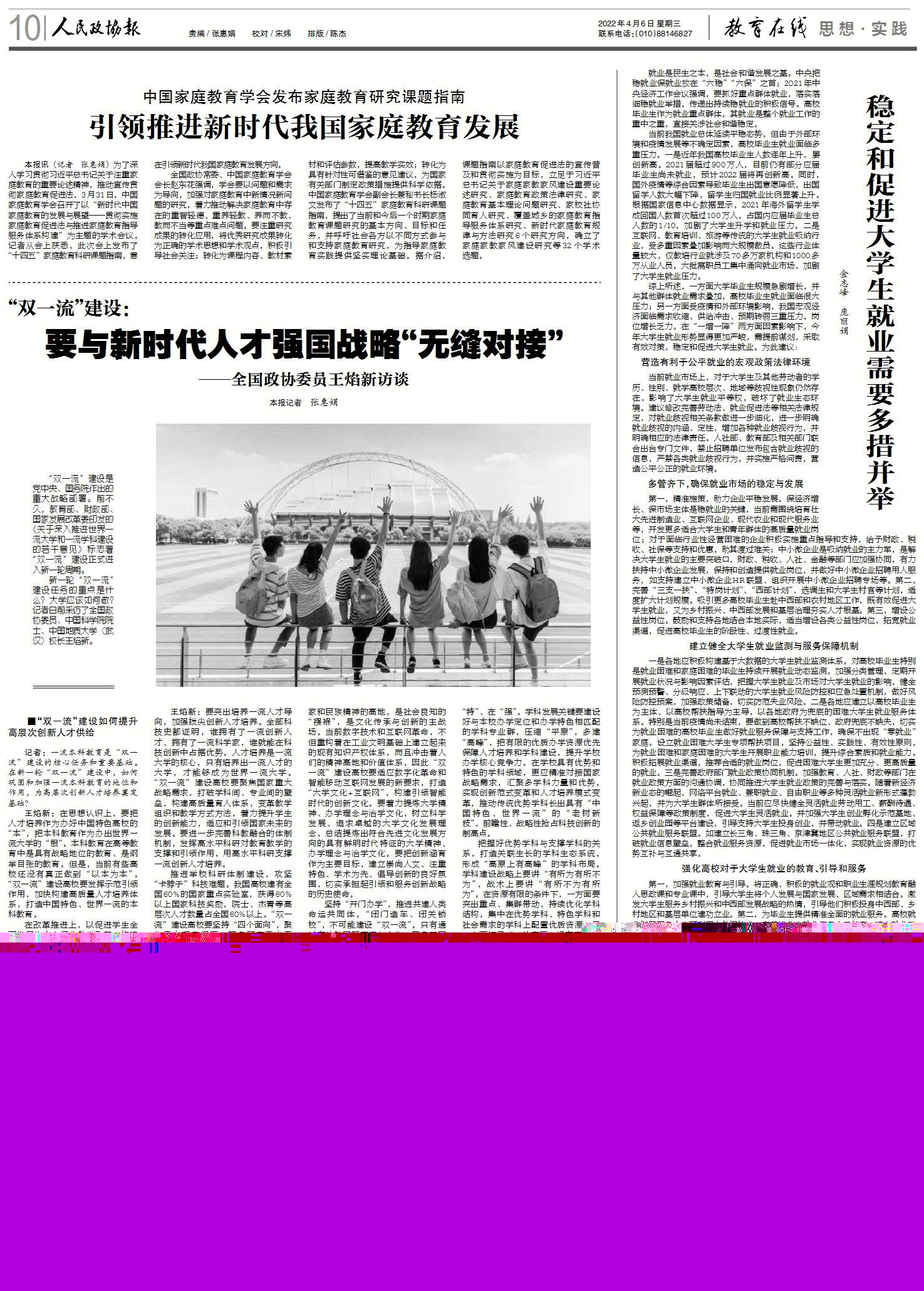 王焰新:要突出培養(yǎng)一流人才導(dǎo)向,加強(qiáng)拔尖創(chuàng)新人才培養(yǎng)。全部科技史都證明,誰(shuí)擁有了一流創(chuàng)新人才、擁有了一流科學(xué)家,誰(shuí)就能在科技創(chuàng)新中占據(jù)優(yōu)勢(shì)。人才培養(yǎng)是一流大學(xué)的核心,只有培養(yǎng)出一流人才的大學(xué),才能夠成為世界一流大學(xué)?!半p一流”建設(shè)高校要聚焦國(guó)家重大戰(zhàn)略需求,打破學(xué)科間、專業(yè)間的壁壘,構(gòu)建高質(zhì)量育人體系,變革教學(xué)組織和教學(xué)方式方法,著力提升學(xué)生的創(chuàng)新能力,適應(yīng)和引領(lǐng)國(guó)家未來(lái)的發(fā)展。要進(jìn)一步完善科教融合的體制機(jī)制,發(fā)揮高水平科研對(duì)教育教學(xué)的支撐和引領(lǐng)作用,用高水平科研支撐一流創(chuàng)新人才培養(yǎng)。